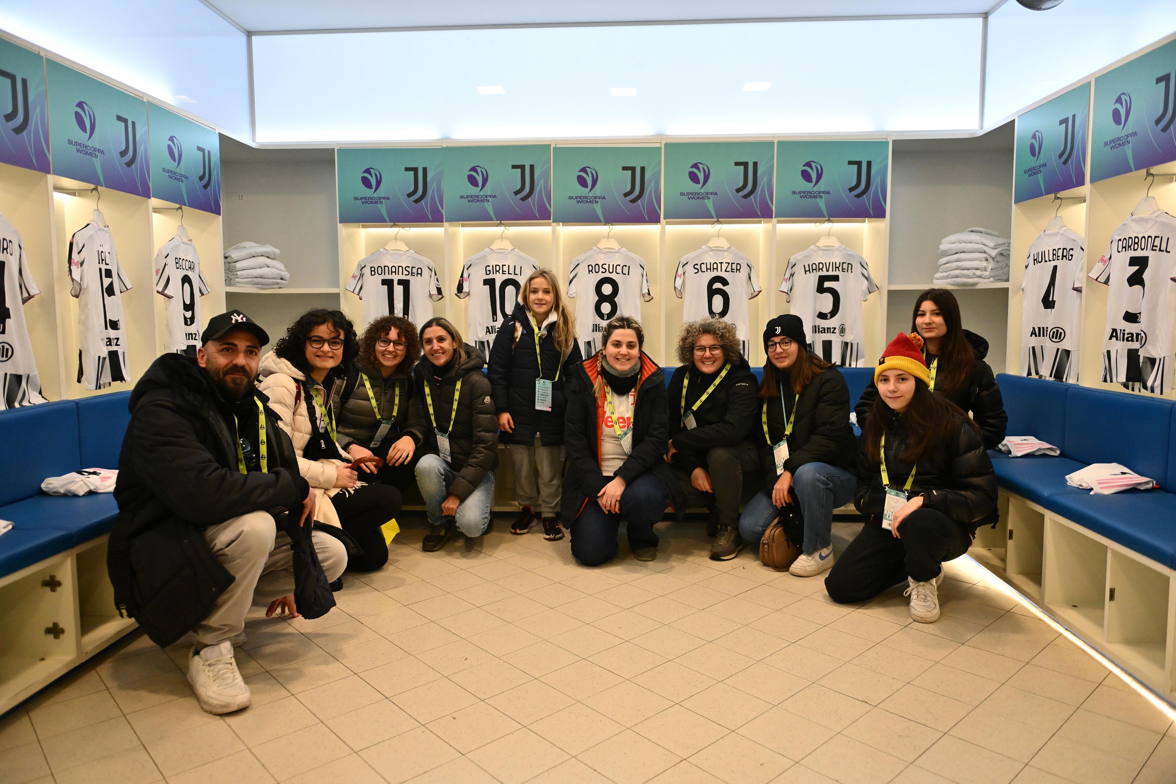 Stefano, la figlia Olimpia, Jessica, Liviana, Roberta, Natalia, Alice, Paola, Donatella, Cecilia. Tifose della Juventus o della Roma, o semplici appassionate di calcio. Quasi una squadra di calcio, che potrà raccontare di aver visto la Supercoppa Women da un'altra prospettiva. Dieci fan hanno infatti avuto la possibilità, dopo aver partecipato all'iniziativa lanciata sui canali social della Serie A Women, di vivere la ‘Field experience’: gli spogliatoi, l'arrivo dei pullman delle due squadre, il riscaldamento e la premiazione a pochi metri dal campo, la foto con il trofeo e con la presidente della Serie A Women Federica Cappelletti, che ha consegnato loro dei gadget delle due squadre e dell’evento. Emozioni nuove, indimenticabili, enormi come la passione che da tutta Italia le ha portate allo stadio ‘Adriatico’.