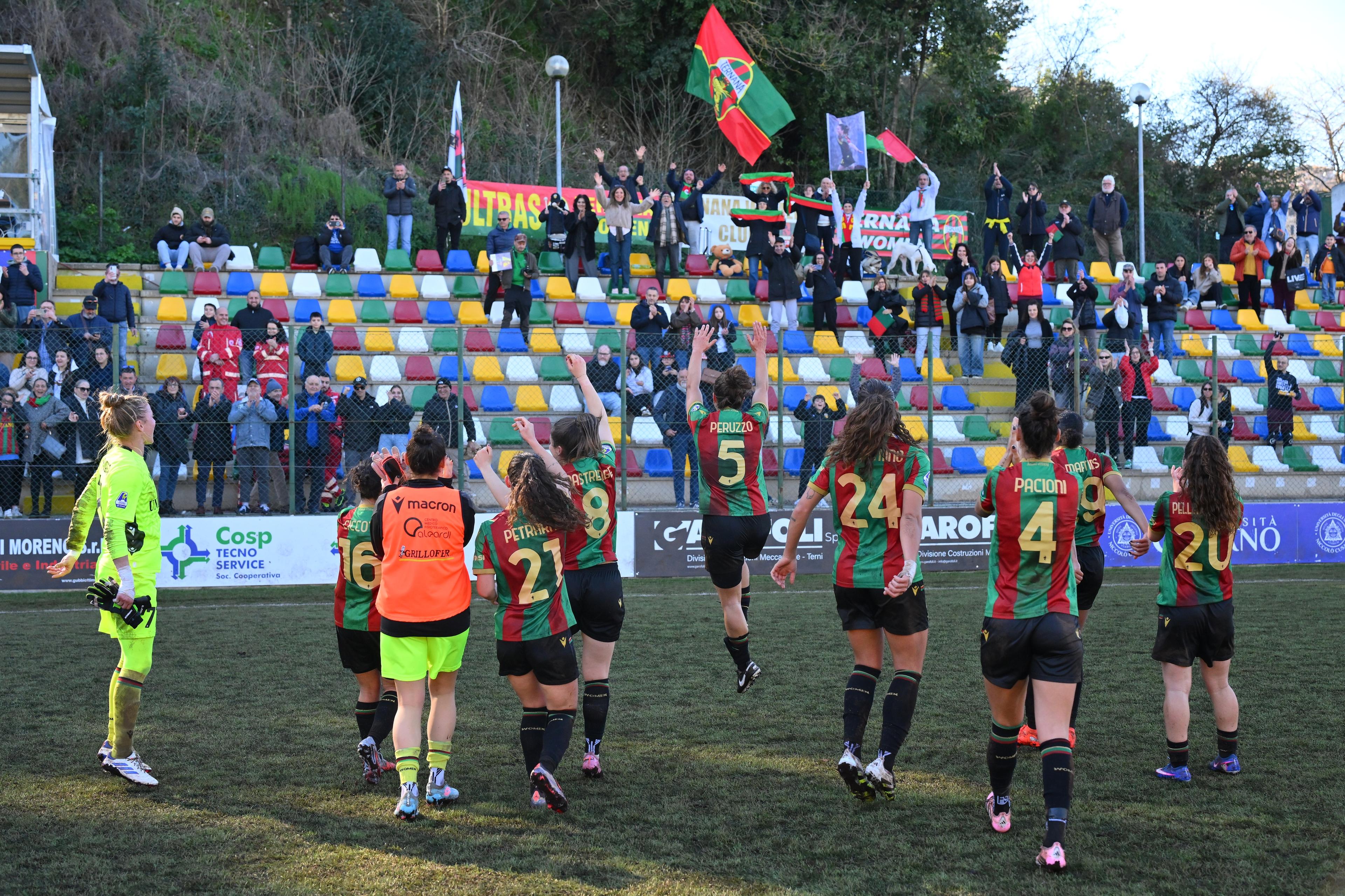 Al “Moreno Gubbiotti” le piemontesi si portano avanti al 28’ con una conclusione perfetta sotto l’incrocio di Brighton e raddoppiano al 34’ grazie al tocco sotto di Capeta sul suggerimento di Calligaris. La partita si riapre però al minuto 44 con Pirone, che dagli 11 metri accorcia le distanze. Nel secondo tempo le Campionesse d’Italia in carica cercano di amministrare il vantaggio, ma la determinazione della squadra umbra alla fine costa il pareggio alle bianconere: dopo due occasioni sfumate per Pirone, al 77’ si prende ancora una volta la scena Pellegrino Cimò (MVP dell’incontro in base ai dati Opta), che con un tocco sotto porta regala un punto d’oro alla Ternana, terzultima a quota 11 e a -1 dal Sassuolo a 12, sconfitto nel posticipo delle 18.00.