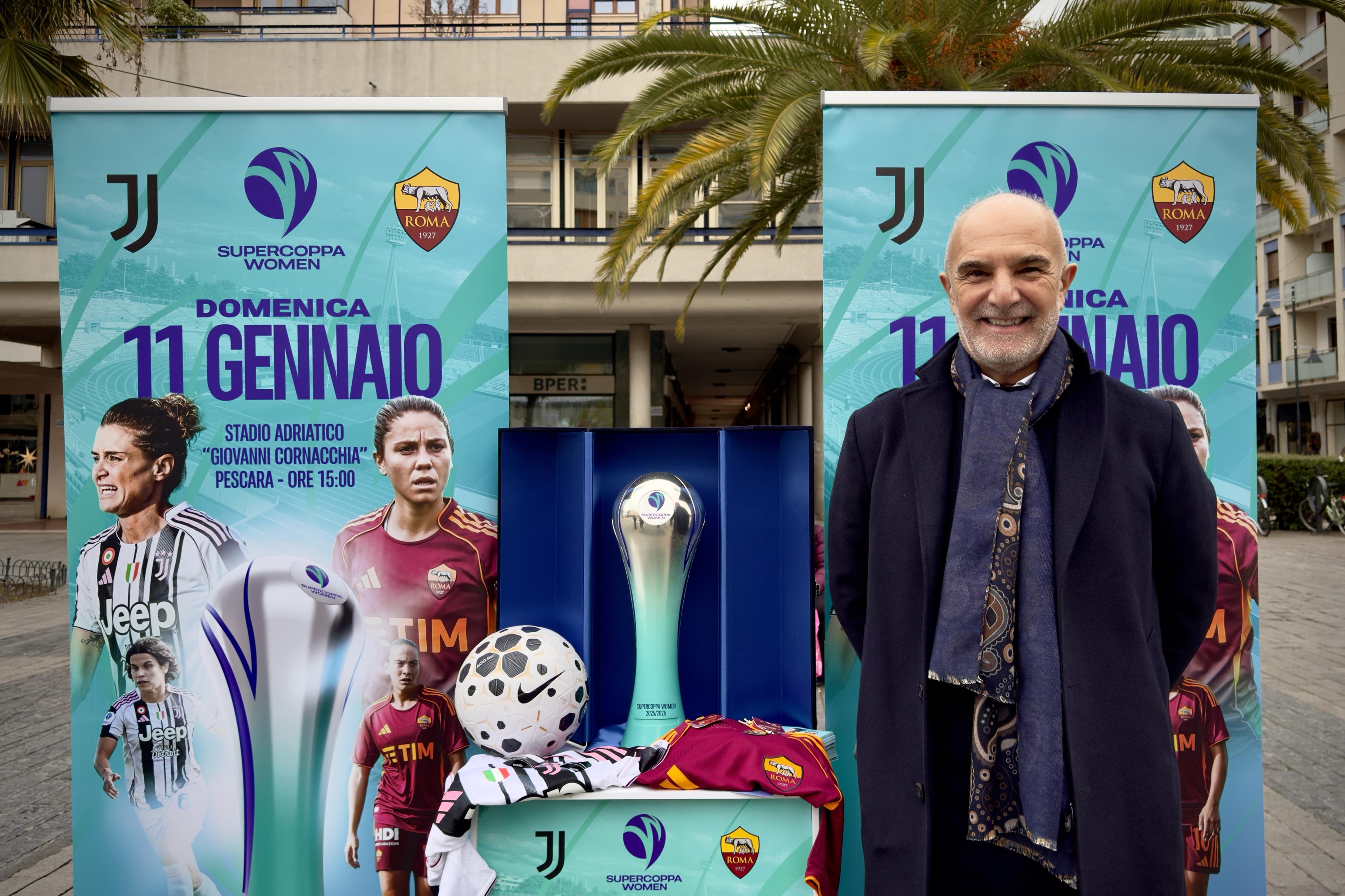 Aspettando l’11 gennaio e la sfida tra Juventus e Roma, la Supercoppa Women è già a Pescara. Dopo la conferenza stampa di presentazione di giovedì scorso nella Sala Giunta in Comune, il trofeo è stato esposto sabato sera allo stadio Adriatico ‘Giovanni Cornacchia’ durante Pescara-Reggiana, match del campionato di Serie B terminato 2-1 per gli abruzzesi.