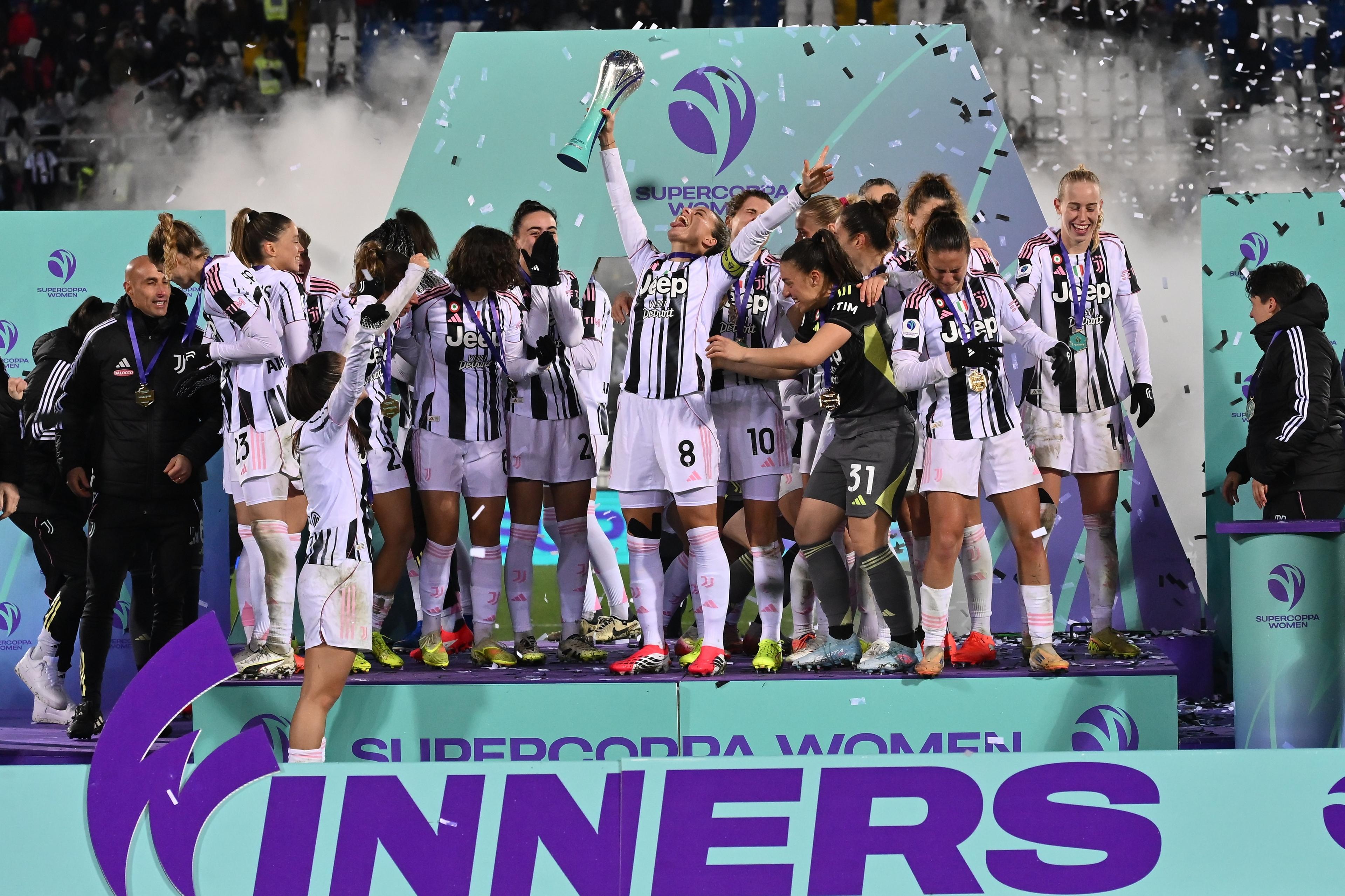 Quindicesimo gol alla Roma e dodicesima Supercoppa della sua carriera. C’è la firma di Cristiana Girelli sul trionfo della Juventus: a Pescara, davanti a quasi 6.000 spettatori, la squadra di Max Canzi si è portata a casa il trofeo, il quinto nella storia del club bianconero, che arriva a distanza di due anni dall’ultima Supercoppa alzata a Cremona. Finì anche in quel caso 2-1, con la Juventus che all’Adriatico ‘Giovanni Cornacchia' ha saputo rimontare con Amalie Vangsgaard il gol del vantaggio giallorosso di Manuela Giugliano. Poi, però, è entrata Girelli: subentrata a metà ripresa a Cambiaghi, la numero 10 con un meraviglioso colpo di tacco ha deciso la partita a 5’ dai supplementari. Da un’emozione all’altra, con Girelli che domani a Torino sarà tedofora della fiaccola olimpica di Milano Cortina 2026 con il Ct della Nazionale Andrea Soncin, presente in tribuna come il presidente federale Gabriele Gravina.