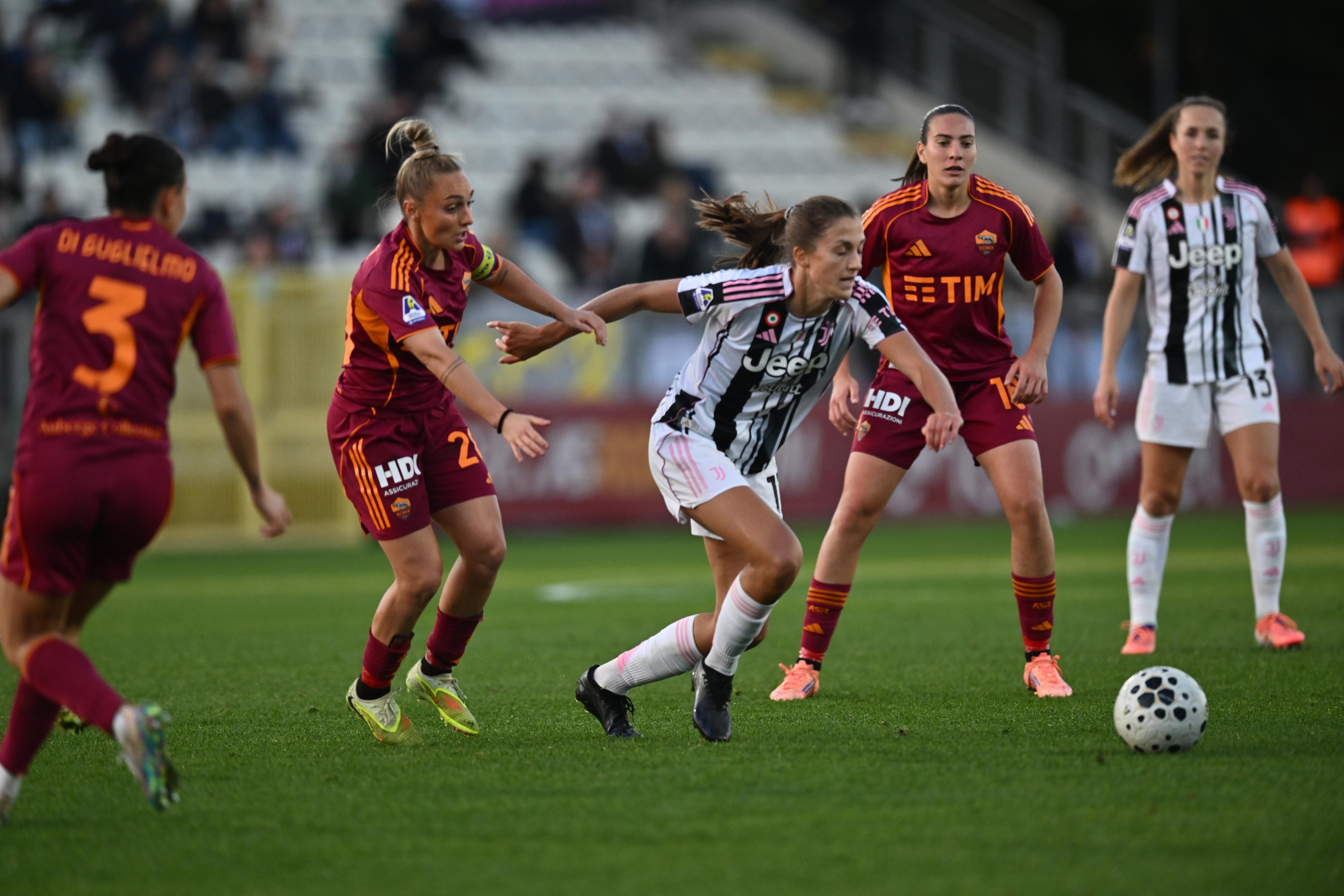 ROMA-JUVENTUS 1-1. Un tempo per parte e un punto a testa. In un Tre Fontane gremito dal pubblico delle grandi occasioni, il big match di questa 8ª giornata si chiude in parità. Prima metà di gara dominata dalle giallorosse, che sbloccano la sfida al 12’ con la prodezza di Bergamaschi: destro da cineteca dai 30 metri e palla all’incrocio, dove de Jong non può proprio arrivare. Ripresa invece completamente a tinte bianconere. Pinto imbuca difatti il pareggio al 70’, dopo grande slalom di Stølen Godø nell’area romanista. In pieno recupero, le ospiti hanno pure la doppia chance per vincere questa supersfida, ma sia Krumbiegel che Carbonell peccano di precisione a tu per tu con Baldi. La Juventus si conferma comunque tanto solida quanto cinica: dalla stagione 1986-87, tra le squadre con otto o meno gol segnati dopo otto partite di un singolo campionato, nessuna ha conquistato più punti rispetto alla Signora: 14 con otto reti realizzate, come la Turris nel 1991-92.