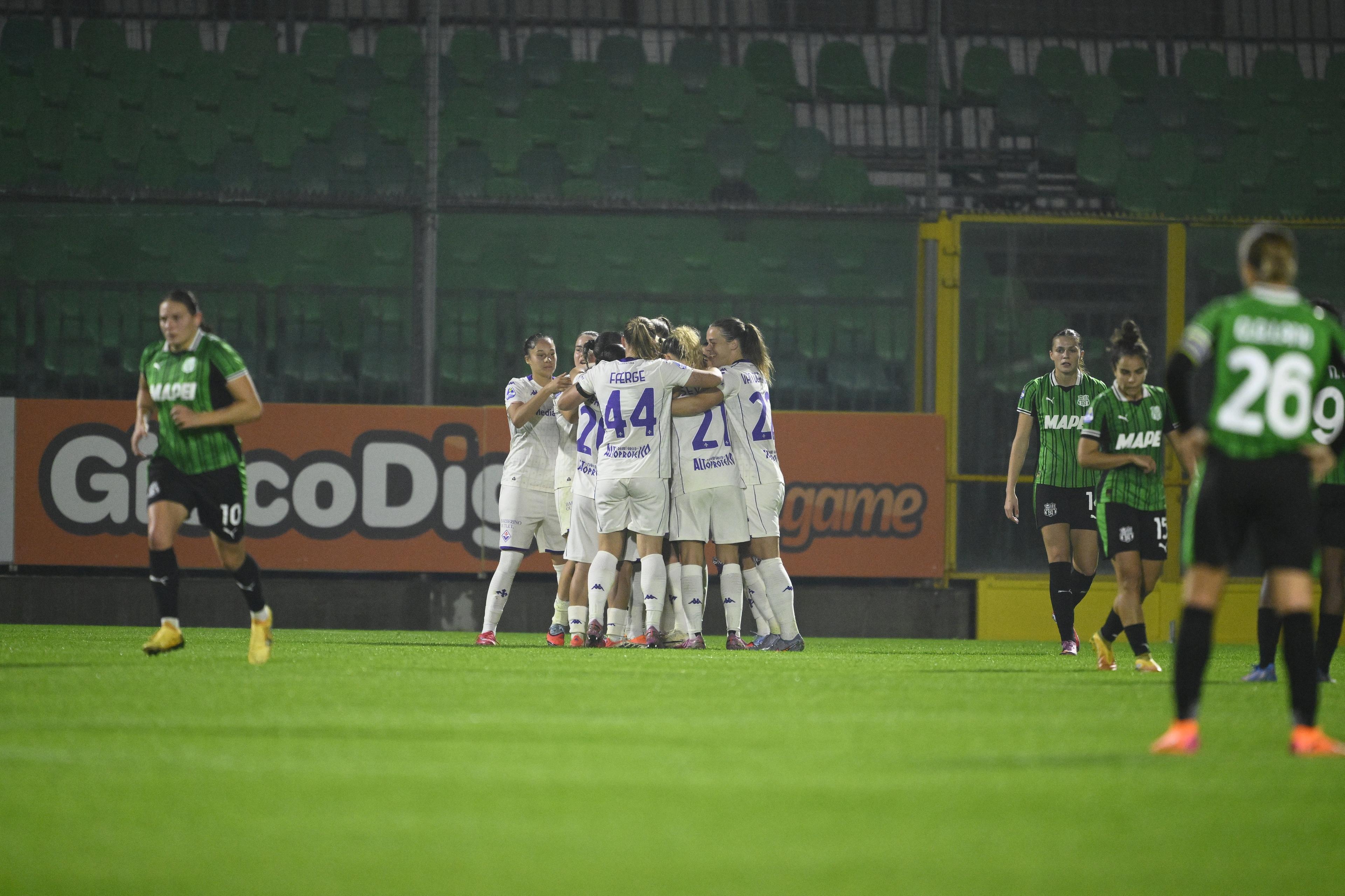 SASSUOLO-FIORENTINA 0-1. Vince infine la Fiorentina l’ultimo match della quarta giornata di campionato. La gara delle 18.00 andata in scena al “Ricci” se la aggiudicano per 1-0 le toscane, che salgono a sette punti in campionato, con Napoli e Juventus. Partono con grande determinazione le viola di Pinones-Arce, che creano tanto in attacco con i tentativi di Cherubini, Omarsdottir e Bredgaard su punizione; ma è l’asse Bredgaard-Janogy che genera più pericoli alla difesa neroverde e che, nel finale del primo tempo, confeziona la rete del vantaggio - cross da destra della danese e incornata della compagna di squadra. Nella ripresa sfiorano il raddoppio Bredgaard (traversa), van der Zanden e Bonfantini, mentre il Sassuolo di Spugna fatica a trovare spazi e a impensierire le avversarie. Al triplice fischio il risultato premia la Fiorentina, che centra la seconda vittoria nel torneo e aggancia Juventus e Napoli Women alle spalle della Roma. Secondo ko in questo campionato invece per le neroverdi, terzultime a quota quattro davanti a Genoa (tre) e Ternana Women (0).