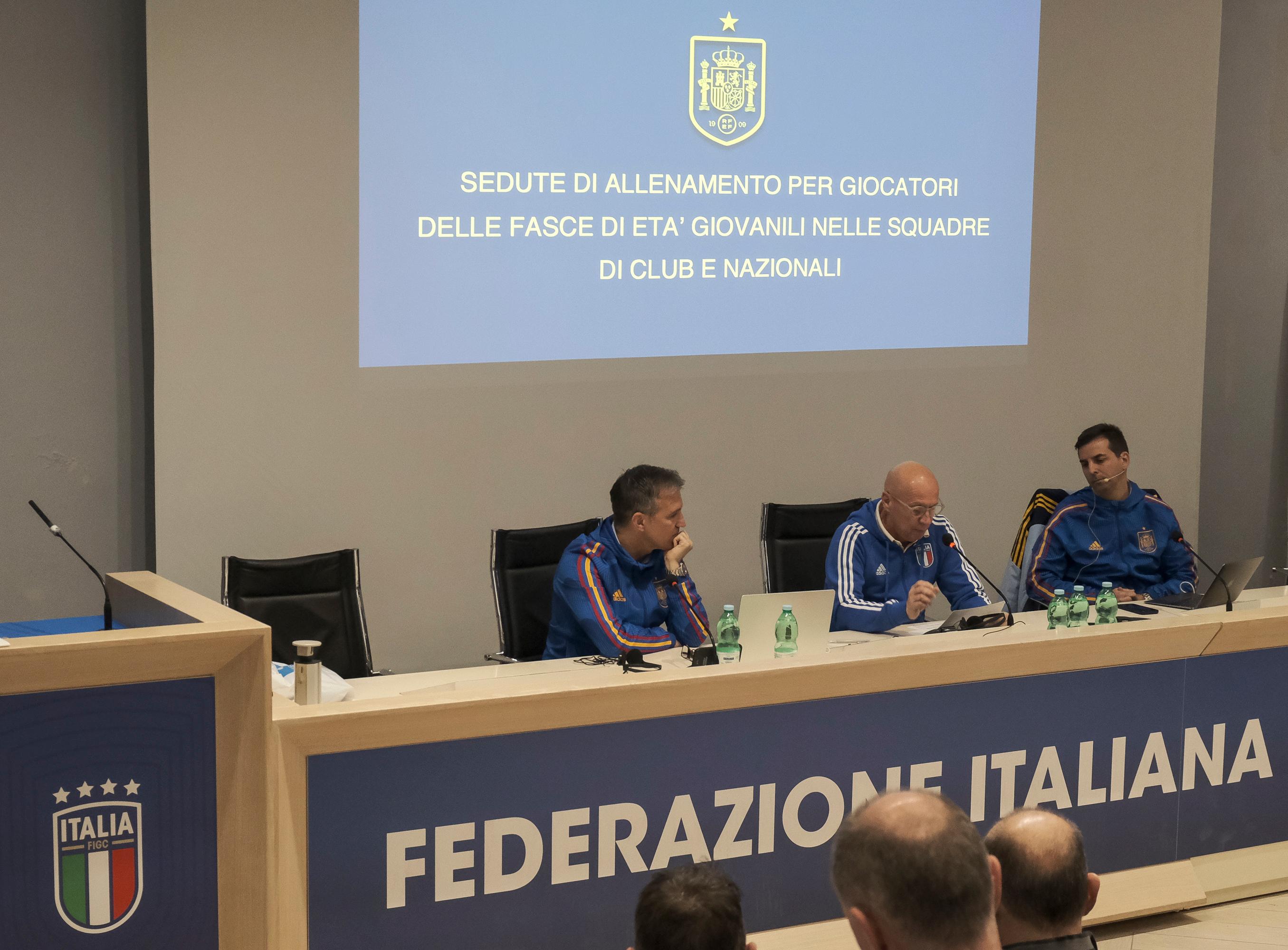 "Mi fa veramente piacere vedere l’aula congiunta" ha esordito Maurizio Viscidi, che poi ha continuato: "Abbiamo un’occasione importantissima e devo ringraziare Francis Hernandez e Vicente Blanco, perché hanno accettato l’invito e sono qui, per un confronto che per noi è di grande crescita. Per me la Spagna a livello giovanile è la nazione che gioca il miglior calcio; un calcio tecnico, fatto di capacità individuale e anche di gioco collettivo di altissimo livello. E allora ci interessa sapere come sviluppano il loro lavoro".