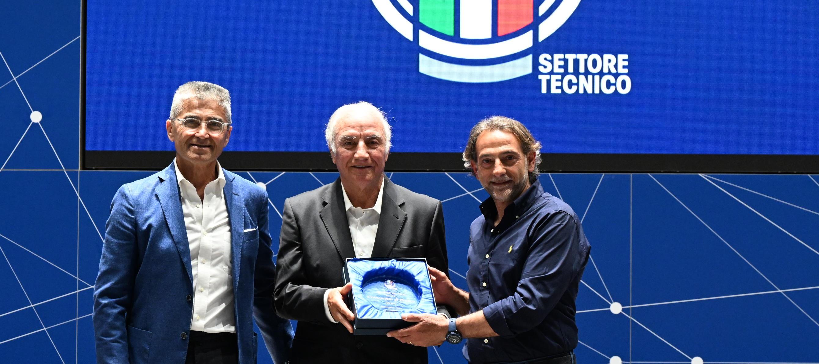 "Il Cronometro d’oro rappresenta un appuntamento di grande importanza" ha sottolineato in apertura di giornata il vice presidente – con funzioni da presidente – del Settore Tecnico, Giuliano Ragonesi, che poi ha continuato: "Si tratta di un’opportunità per incontrarci e confrontarci, condividendo le proprie esperienze. Il tutto supportato da illustri relatori che arricchiscono il dibattito". Come per la Panchina d’oro, infatti, la cerimonia di premiazione del Cronometro d’oro si inserisce all’interno di un corso di aggiornamento professionale che quest’anno ha portato in cattedra illustri relatori, a cominciare dal coordinatore delle Nazionali giovanili maschili, Maurizio Viscidi, che – in collaborazione con il preparatore atletico del Club Italia, Vito Azzone – ha tenuto una lezione dal titolo ‘Analisi e valutazione del giovane calciatore in prospettiva europea’. Tra i docenti che poi si sono alternati in cattedra nell’auditorium di Coverciano, anche Loris Bonamassa, Gennaro Boccia e Claudio Mazzaufo.