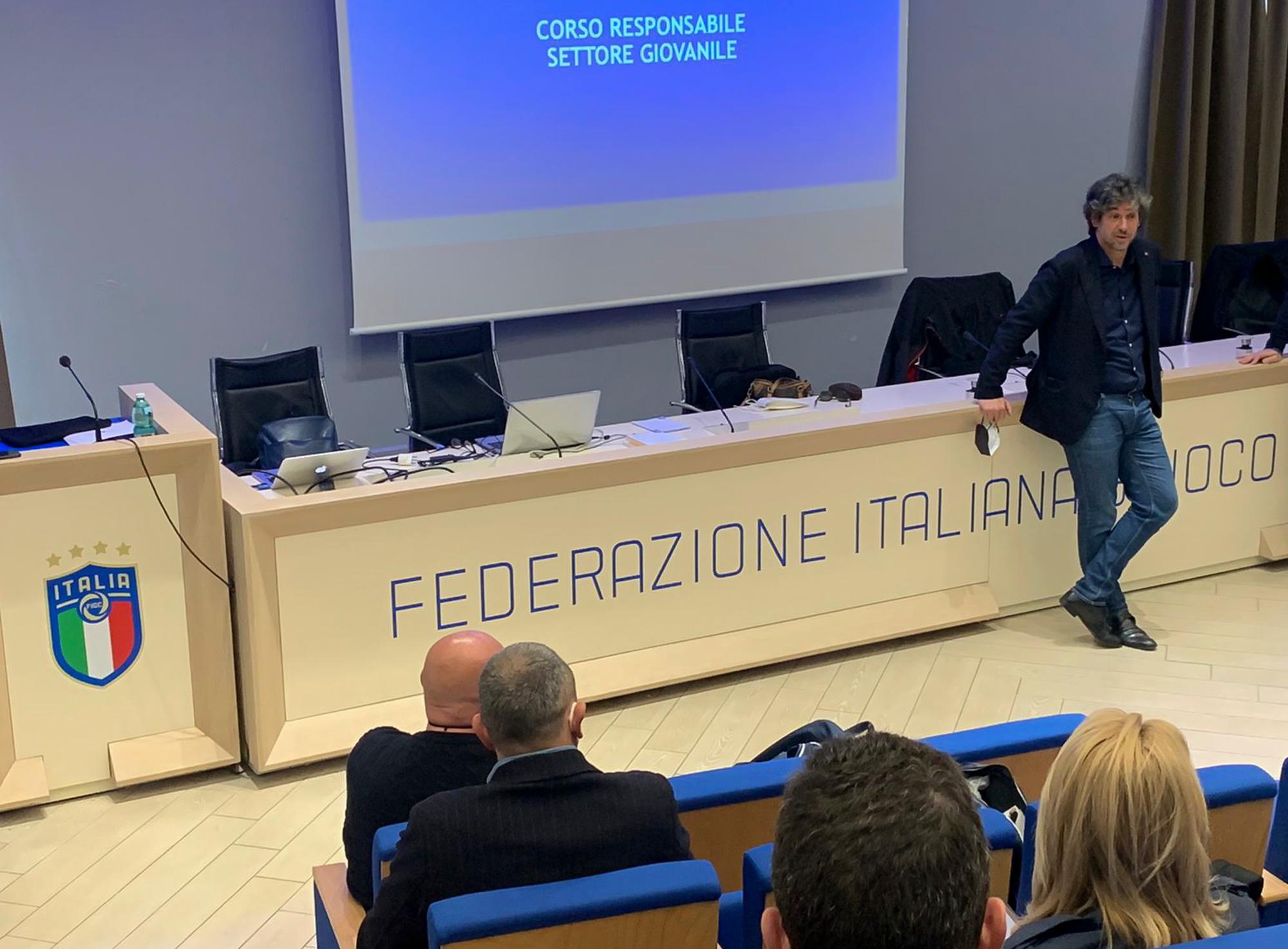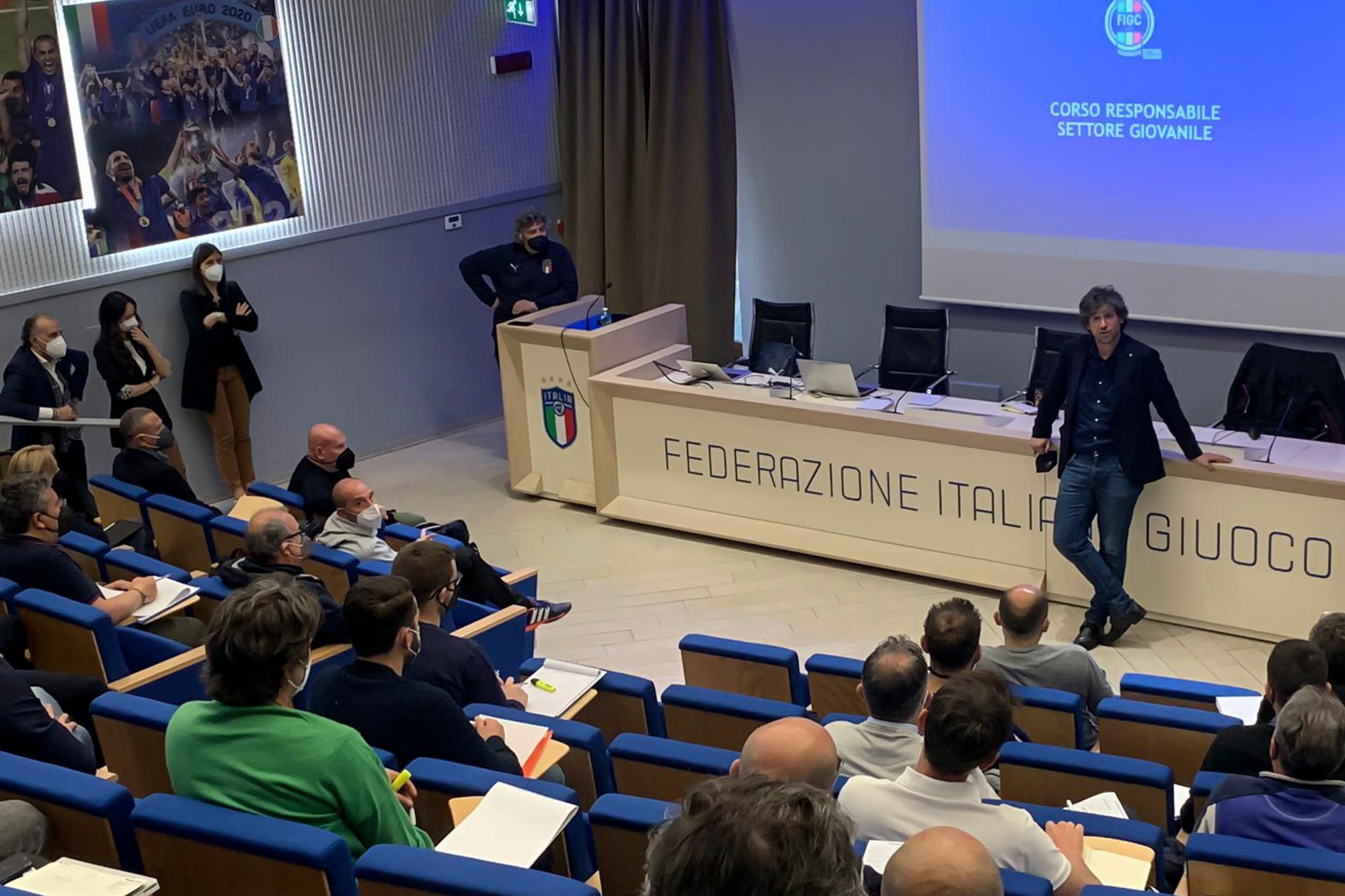 Ultimo giorno in aula, almeno per questa settimana di lezione, per gli allievi del corso dedicato ai ‘Responsabili di Settore Giovanile’: con le lezioni in streaming, terminerà domani la terza settimana del corso, che riprenderà lunedì prossimo, 2 maggio, nuovamente nelle aule di Coverciano.
