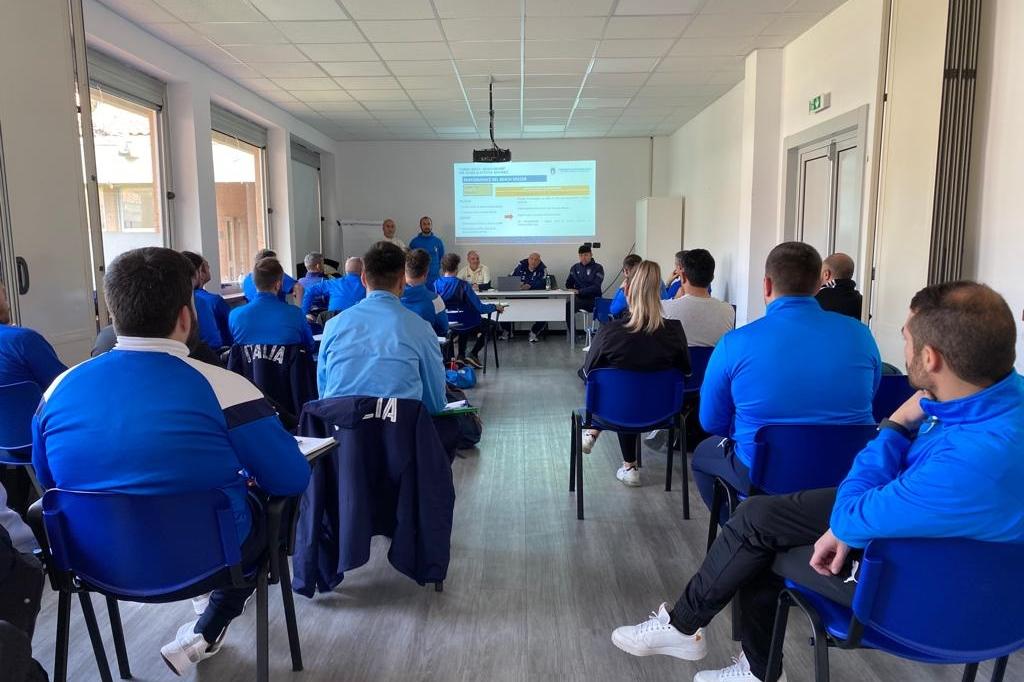 Per parlare davanti agli allievi delle metodologie di lavoro di questa disciplina, è intervenuto al Centro di Preparazione Olimpica come docente d’eccezione il Ct dell’Italbeach, Emiliano Del Duca. Presente per salutare i corsisti anche il capo delegazione dell’Italbeach, Nando Arcopinto, oltre al docente di riferimento del corso, Massimiliano De Celis.