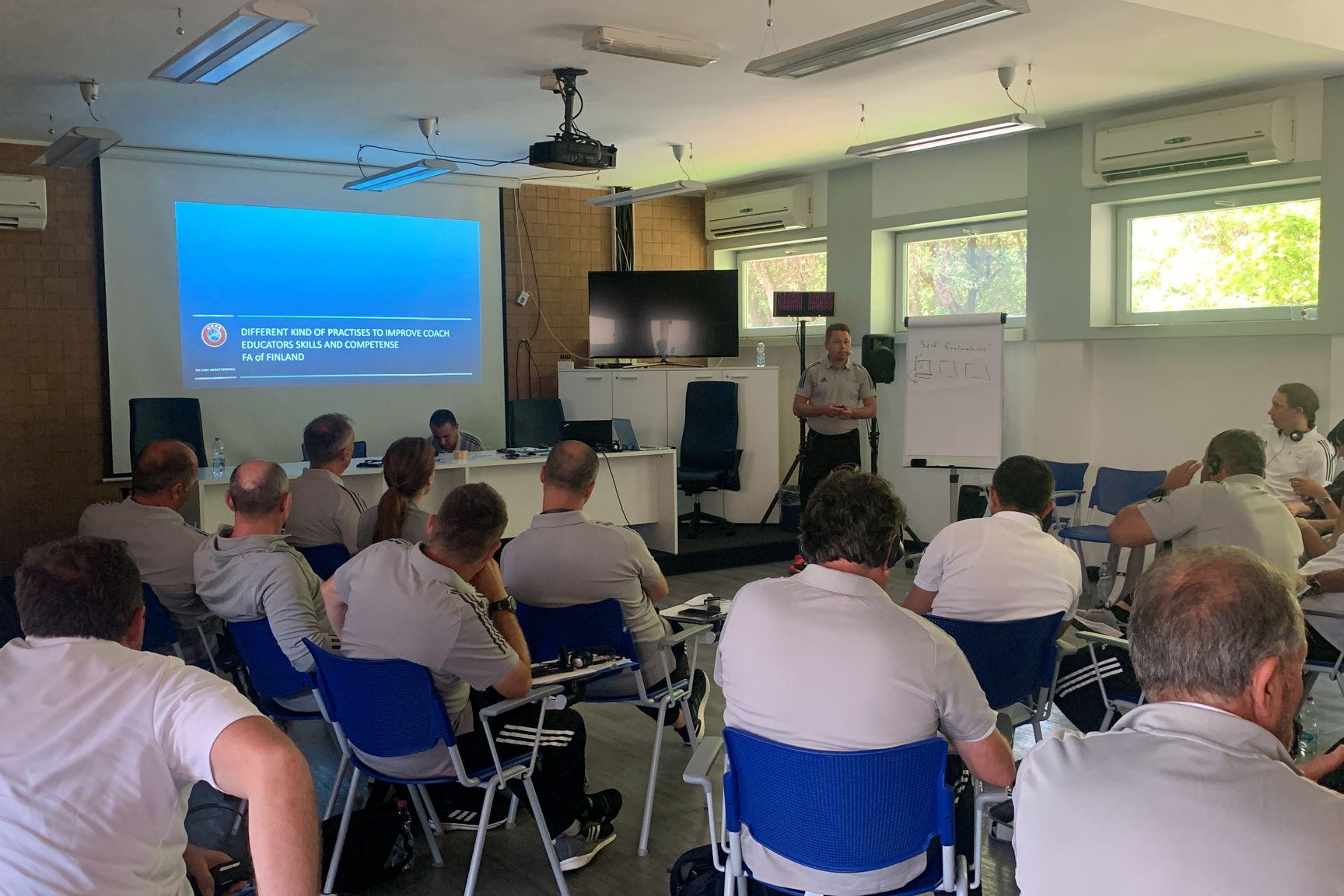 Termina oggi, al centro di preparazione olimpica di Tirrenia, l’UEFA Share dedicato alla formazione degli allenatori, dal titolo ‘Coach Educator development’. Il seminario, voluto dalla confederazione europea e organizzato dal Settore Tecnico FIGC, ha coinvolto – oltre a quella italiana – anche le federazioni di Armenia, Bosnia ed Erzegovina, Cipro, Finlandia, Georgia e Ungheria.
