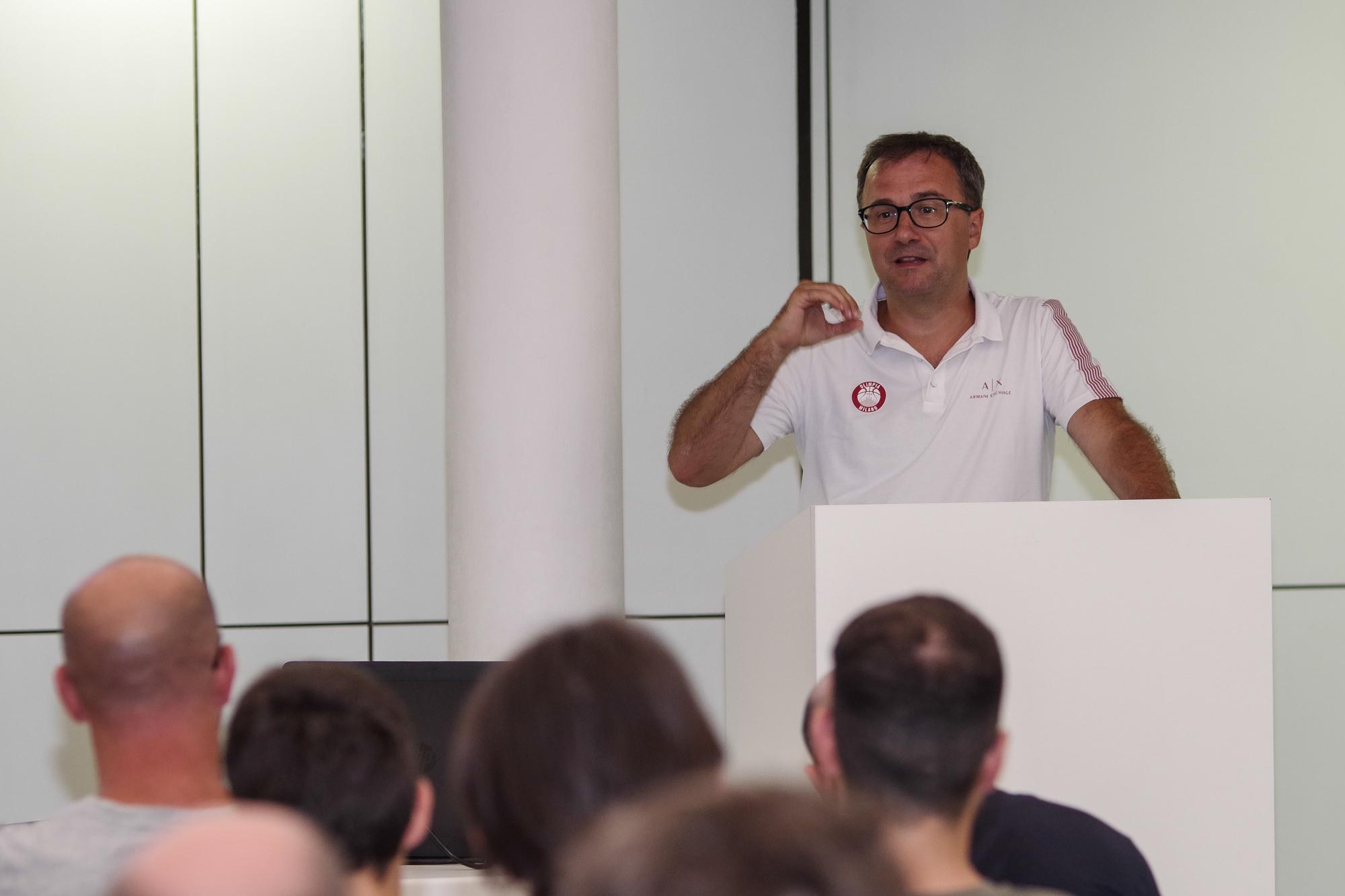 Un allievo 'particolare’. Seduto in aula, ad ascoltare la lezione tenuta da Mario Fioretti, era presente anche coach Luca Banchi, allenatore di Milano dal 2013 al 2015 e che nel suo staff aveva avuto proprio Fioretti. Dopo alcune esperienze tra Germania e Grecia, oggi Banchi allena in Russia, al Lokomotiv Kuban.
