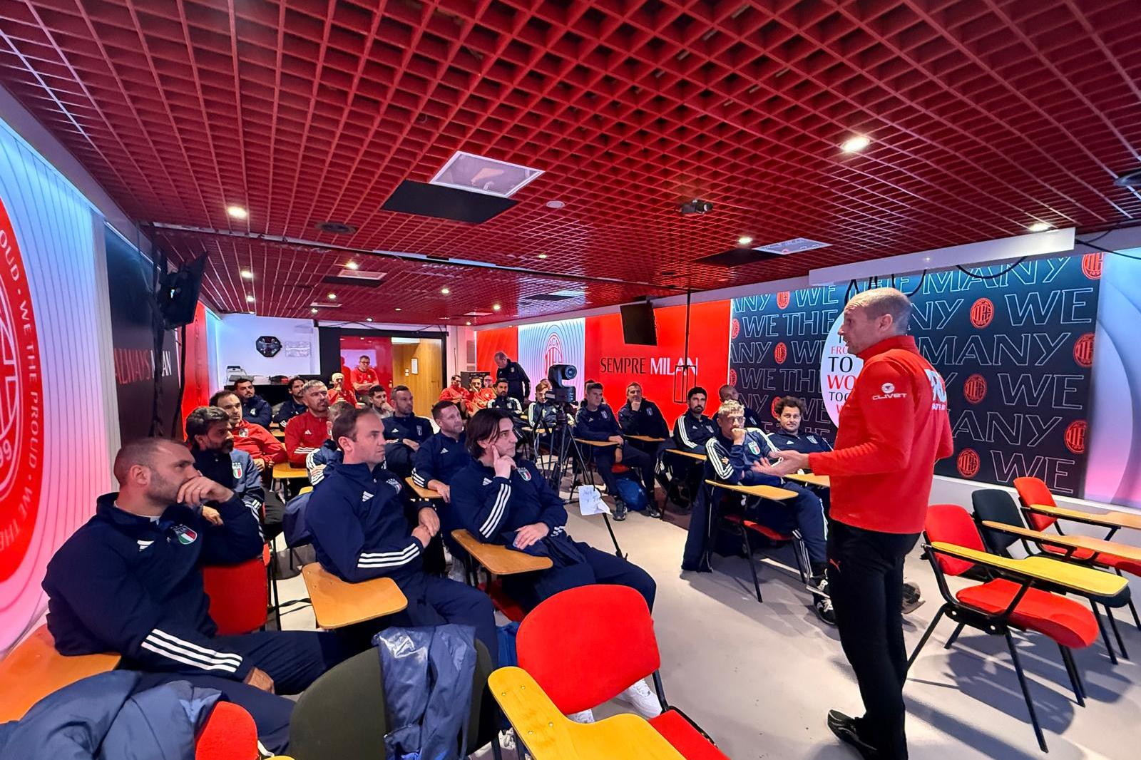 Due giorni dai ‘primi della classe’: ieri e oggi gli allievi del corso per allenatori UEFA Pro – il massimo livello formativo per i tecnici – sono stati ospiti del Milan per uno stage.