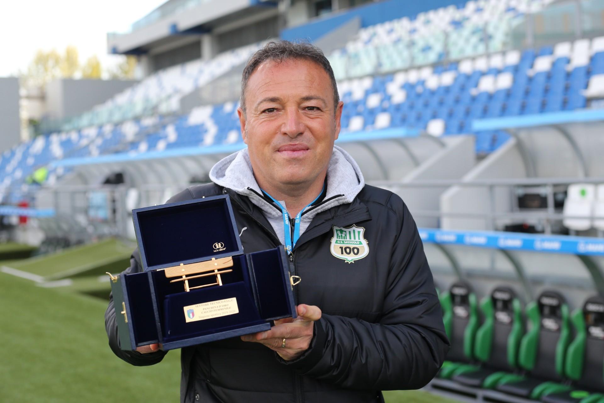 Una giornata intensa, vissuta tra San Marino e Reggio Emilia, per continuare nel proprio ‘tour’ in giro per la penisola italiana, per consegnare agli allenatori vincitori i riconoscimenti conquistati per essere stati votati dai propri colleghi quali migliori allenatori della scorsa stagione nelle rispettive categorie. Nella giornata di sabato il presidente del Settore Tecnico, Demetrio Albertini - dopo essere stato a Zingonia per premiare Gasperini e a Benevento per omaggiare Filippo Inzaghi - ha virato sull’Emilia Romagna e su San Marino, per celebrare i migliori allenatori del calcio femminile della scorsa stagione: nelle votazioni avvenute on-line nelle scorse settimane, infatti, i migliori tecnici della Serie A TIMVISION e della Serie B femminile sono risultati essere Gianpiero Piovani del Sassuolo e Alain Conte, tecnico che ha condotto la San Marino Academy alla promozione nel massimo campionato nazionale. Così Albertini si è recato personalmente, prima al San Marino Stadium, cornice dell’allenamento delle Titane, per consegnare la Panchina d’argento al tecnico Alain Conte, quindi allo stadio Città del Tricolore di Reggio Emilia, prima di Sassuolo-Fiorentina (maschile), per consegnare la Panchina d’oro all’allenatore neroverde Gianpiero Piovani.
