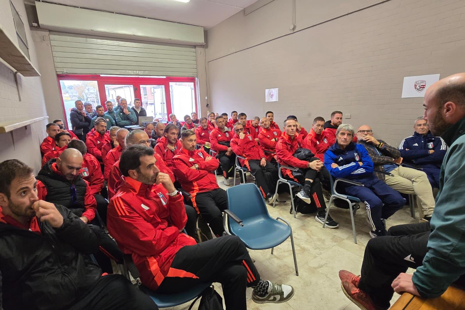 Un giorno in una delle realtà più interessanti di questo campionato di Serie C, per ‘toccare con mano’ quale potrebbe essere il loro futuro lavorativo: gli allievi del corso UEFA A sono stati oggi ospiti del Carpi per uno stage formativo. Un’intera giornata vissuta tra visioni dell’allenamento (doppia la seduta odierna: sia in mattinata che nel pomeriggio) e lezioni in aula, per scoprire le idee e le metodologie dello staff emiliano. A fare gli onori di casa il tecnico del Carpi, Stefano Cassani, che insieme al suo staff ha tenuto una lezione ai corsisti, guidati in questa esperienza fuori da Coverciano dal segretario del Settore Tecnico, Paolo Piani, e dai docenti Mario Beretta e Francesco Perondi.