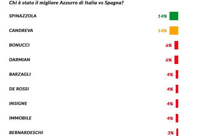 Andrea Belotti è stato eletto dagli utenti di Vivoazzurro.it come il migliore azzurro in campo di Spagna-Italia 3-0. La prova del "Gallo" è stata forse la sola nota positiva della sconfitta al Bernabeu. Pericoloso e dinamico, sfiora il gol del pareggio con un colpo di testa sventato miracolosamente dall'estremo difensore spagnolo de Gea. Alle spalle di Belotti (28%) i Tifosi Azzurri hanno piazzato a pari-merito, con il 14% delle preferenze, Leonardo Spinazzola e Antonio Candreva.I "Migliori Azzurri" in campo delle gare della Nazionale di quest’anno saranno elegibbili per il Pallone Azzurro 2017.