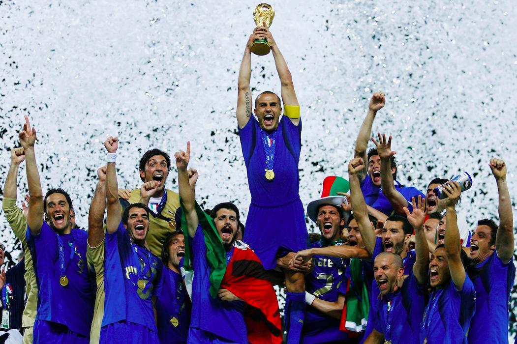 Sono trascorsi otto anni, ma il ricordo resta indelebile nella memoria di tutti. La finale di Berlino, con capitan Fabio Cannavaro che alza la quarta Coppa del Mondo, è stata l'apice di un cammino trionfale ed emozionante, partito con la vittoria dell'esordio per 2-0 contro il Ghana, grazie ai gol di Pirlo e di Iaquinta. La qualificazione nella fase a gironi è passata poi dall'1-1 con gli USA (Gilardino) e dal 2-0 alla Repubblica Ceca (Materazzi e Filippo Inzaghi), proseguendo con l'ottavo di finale da batticuore contro l'Australia (1-0, rigore trasformato all'ultimo secondo da Francesco Totti) e con il quarto di finale con l'Ucraina (3-0, Zambrotta e doppio Luca Toni). La semifinale di Dortmund contro la Germania, vinta 2-0 in maniera meritatissima contro i padroni di casa grazie ai gol epici ai supplementari di Grosso e Del Piero, ha portato una nazione intera a giocarsi la finale nella capitale tedesca contro la rivale più agguerrita degli ultimi anni: la Francia. I transalpini avevano eliminato l'Italia sia nei Mondiali di casa (quarto di finale vinto ai rigori) sia nella dolorosissima finale europea del 2000, quando un gol a una manciata di secondi dalla fine di Wiltord e il golden gol di Trezeguet ai supplementari avevano regalato ai Bleus una storica doppietta.Ma a Berlino è stata un'altra storia. In svantaggio dopo pochi minuti per un rigore trasformato da Zinedine Zidane, gli Azzurri hanno reagito benissimo trovando presto il pareggio con un colpo di testa di Marco Materazzi e, con una grande prova di squadra, sono arrivati fino ai calci di rigore che tante volte li avevano penalizzati. Quella volta no, era scritto nel destino che proprio Trezeguet, giustiziere sei anni prima, doveva sbagliare il rigore che avrebbe permesso all'Italia di salire per la quarta volta sul tetto del mondo, grazie a una sequenza perfetta di tiri dal dischetto. Pirlo, Materazzi, De Rossi, Del Piero e Fabio Grosso hanno consegnato la Coppa nelle mani di Cannavaro, che l'ha alzata nel cielo di Berlino con tutto l'orgoglio di essere italiano, appuntando un'altra stella, la quarta, sulla maglia azzurra.