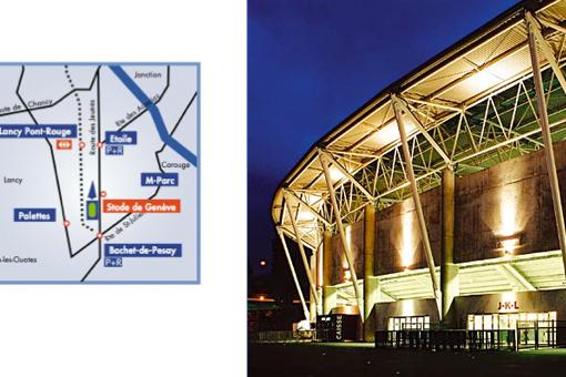 - Fermata bus via Etoile: prendere la linea 15 dalla stazione ferroviaria di Cornavin direzione P&R Etoile, poi la linea 4, 21 o D da P&R Etoile allo stadio.