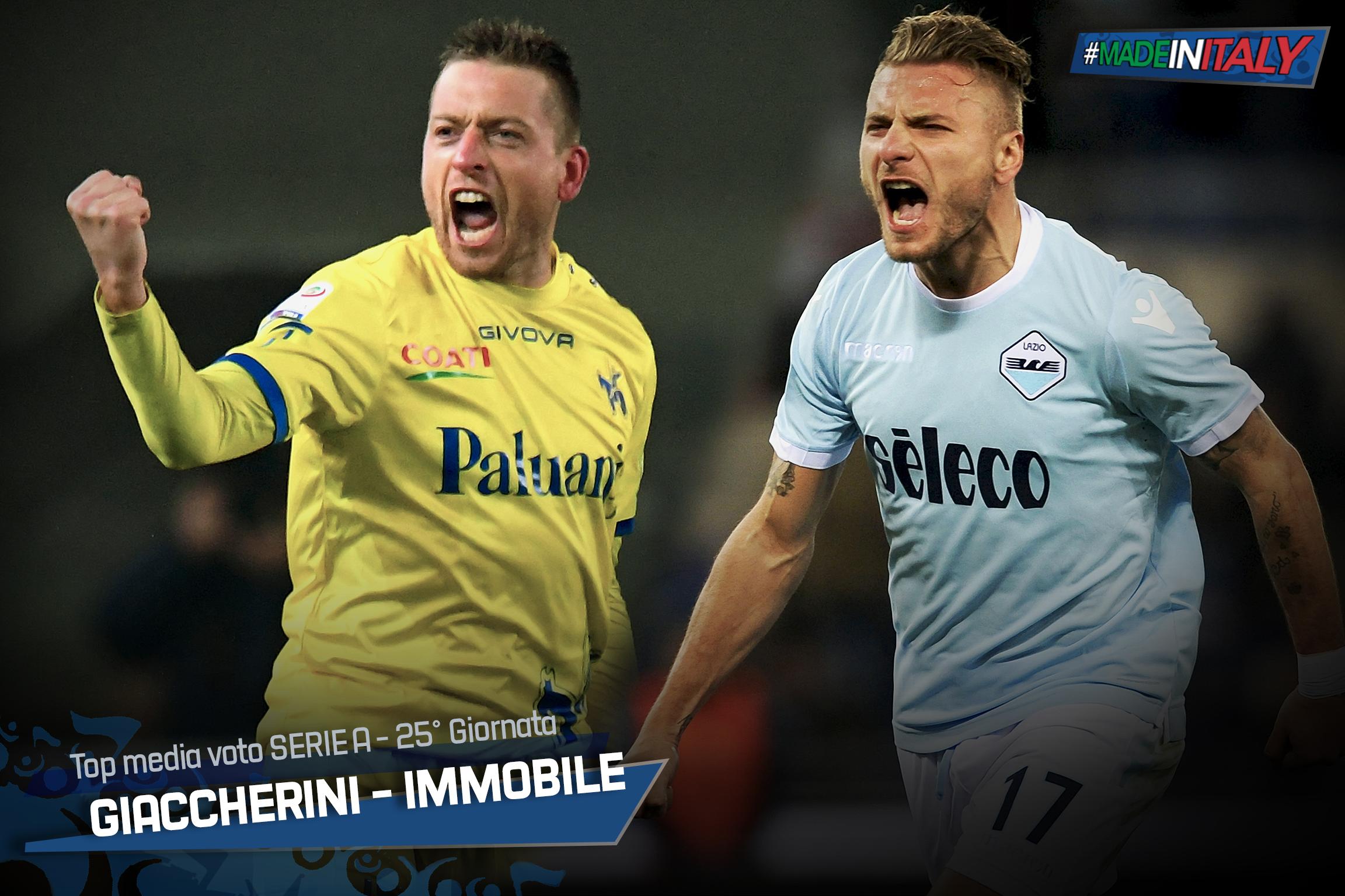 Pubblichiamo le pagelle comparate dei calciatori italiani che hanno ottenuto i voti più alti dalla comparativa dei tre più diffusi quotidiani sportivi del paese (La Gazzetta dello Sport, Corriere dello Sport e Tuttosport).La classifica della Serie A TIMRisultati e prossimo turnoGLI "IN" DEL CAMPIONATOCiro IMMOBILE (G 7,5; C 8; T 7) Lazio-Hellas Verona 2-0Torna al gol dopo un'astinenza che, per il rollino di marcia cui ci aveva abituati, era davvero troppo lunga. D'un sol colpo si scrolla di dosso la ruggine e riporta la Lazio alla vittoria dopo tre sconfitte consecutive. Poco importano gli errori sotto porta della prima frazione, è stato di nuovo decisivo. Emanuele GIACCHERINI (G 7,5; C 8; T 7) Chievoverona-Cagliari 2-1Impatto devastante per l'ex Napoli e Juventus. Appena entrato pennella la punizione del vantaggio per poi imbeccare perfettamente Inglese nell'occasione del raddoppio casalingo. Ha fame e si vede, aggredisce ogni portatore di palla e determina in fase di possesso. Federico BERNARDESCHI (G 7,5; C 7,5; T 7) Torino-Juventus 0-1Entra per rimpiazzare Higuain dopo l'infortunio subìto dall'argentino nei primissimi minuti e non lo fa rimpiangere. Frizzante, atletico, determinante. L'assist per Alex Sandro è stato il 4° nelle ultime 5 partite cui si aggiungono due reti. Peccato per la distorsione rimediata nel finale ma una cosa è certa: si sta prendendo la Juventus.