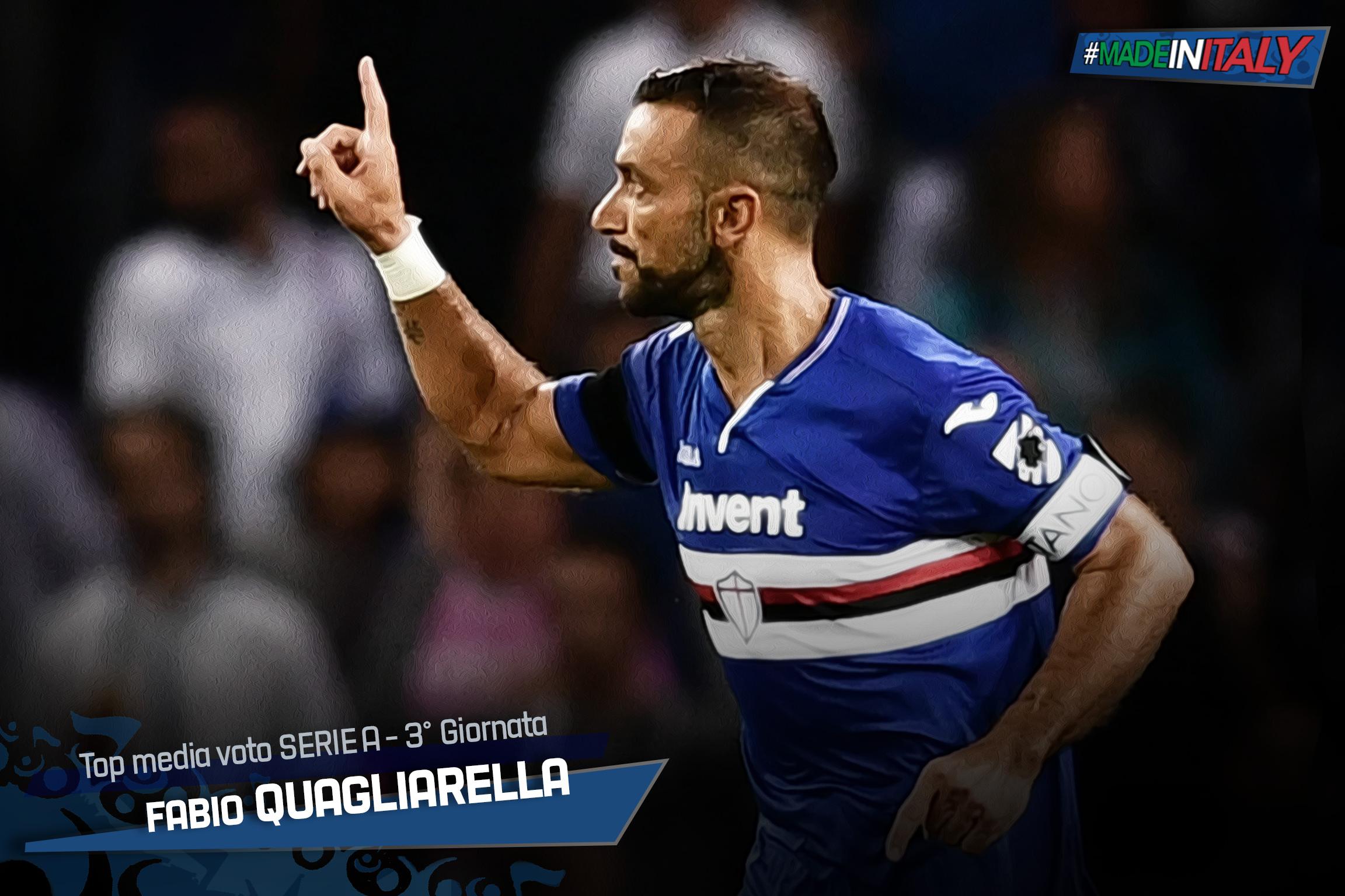 Pubblichiamo le pagelle comparate dei calciatori italiani che hanno ottenuto i voti più alti dalla comparativa dei tre più diffusi quotidiani sportivi del paese (La Gazzetta dello Sport, Corriere dello Sport e Tuttosport).La classifica della Serie A TIMRisultati e prossimo turno GLI "IN" DEL CAMPIONATO Fabio QUAGLIARELLA (G 9: C 8; T 8) Sampdoria - Napoli 3-0Mai banale la sua firma. L'ennesima rete della sua invidiabile carriera è una delle tantissime perle preziose che ha regalato al nostro calcio. Il tutto all'interno di una performance da pollice alto che lo ha visto acceso, intenso e determinato. Il tempo per lui sembra non passare. Marco BENASSI (G 7,5; C 7,5; C 7,5) Fiorentina - Udinese 1-0Sigla il gol vittoria a coronamento dell'ennesima partita da giocatore totale. Inserimenti, qualità nei passaggi, freddezza sotto porta e grande abnegazione in fase difensiva. Grandi notizie per Pioli e grandi notizie per Mancini. Patrick CUTRONE (G 7; C 7,5; C 7) Milan - Roma 2-1Quando entra suona sempre la carica. Si conferma dotato di un senso del gol assolutamente non comune suggerendo il corridoio per il meraviglioso assist di Higuain che trasforma nella rete decisiva. Attaccante purissimo. Nicolò BARELLA (G 7; C 7,5; T 7) Atalanta - Cagliari 0-1Pesantissima vittoria corsara del Cagliari. Brilla, tanto per cambiare, l'azzurro Barella. Centrocampista box to box come amano chiamare in Inghilterra i giocatori capaci di eccellere in ogni singola fase del gioco. Tecnico, rapido, aggressivo. Avrà un grande futuro. Federico CHIESA (G 7; C 7,5; T 7) Fiorentina - Udinese 1-0Non vi possono essere dubbi sul fatto che sia lui ad accendere la Fiorentina. Quando strappa davvero non ce n'è per nessuno, una progressione inesorabile, uno strapotere atletico raro. Confeziona un assist meraviglioso per Benassi e si appresta a ricevere il definitivo crisma di top player.