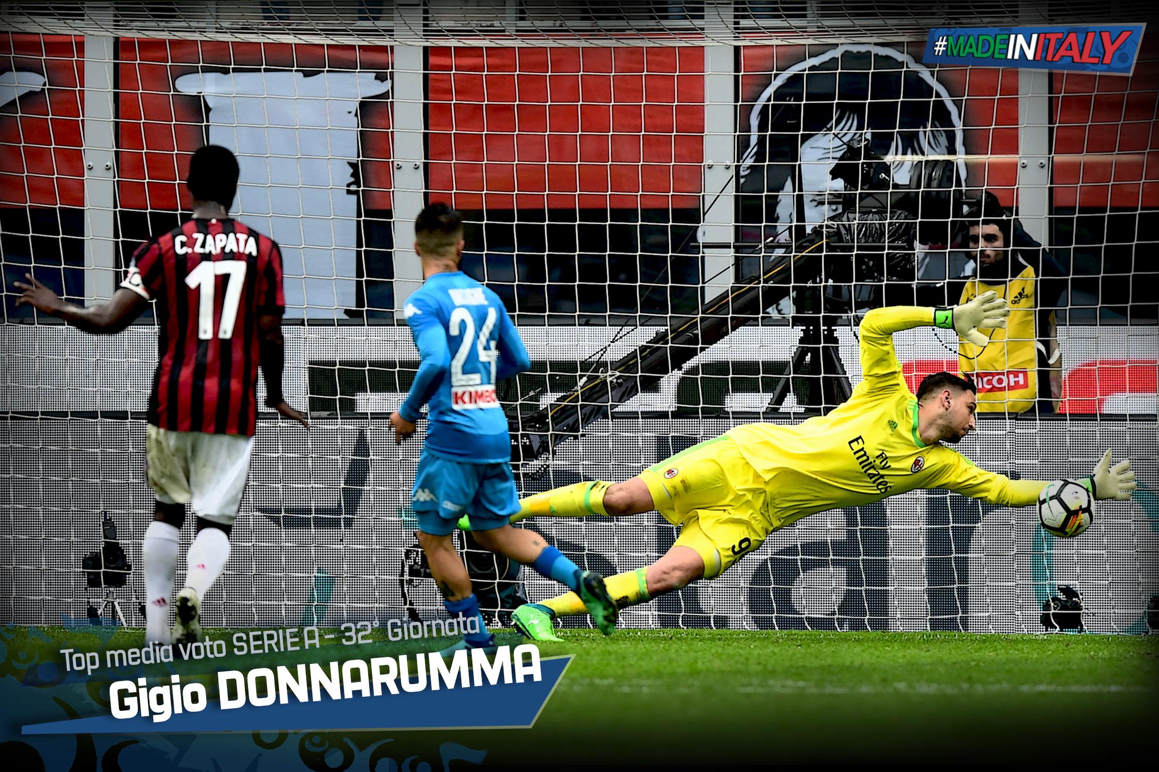 Pubblichiamo le pagelle comparate dei calciatori italiani che hanno ottenuto i voti più alti dalla comparativa dei tre più diffusi quotidiani sportivi del paese (La Gazzetta dello Sport, Corriere dello Sport e Tuttosport).La classifica della Serie A TIMRisultati e prossimo turnoGLI "IN" DEL CAMPIONATO Gianluigi DONNARUMMA (G 8; C 7,5; T 8) Milan - Napoli 0-0Festeggia il record assoluto di precocità nel tagliare il traguardo delle 100 presenze nella massima serie (battendo un illustrissimo predecessore in maglia rossonera come Gianni Rivera) e lo fa con la miglior prestazione della stagione. Abile e sicuro nel gestire il pallone con i piedi, è decisivo su Mertens e Insigne e addirittura mostruoso su Milik a pochi minuti dal termine. Meritato l'encomio ricevuto da Gattuso nel dopo partita. Simone VERDI (G 7; C 7; T 7,5) Bologna - Hellas Verona 2-0Nessuno è mai riuscito a capire quale sia il suo piede forte e ieri ha dato l'ennesima riprova dell'assoluta e rarissima indifferenza nella facilità di calcio con una punizione mancina che si è infilata all'incrocio dei pali. Rappresenta il punto di riferimento assoluto dell'attacco emiliano e sta tornando ai livelli di eccellenza cui ci aveva abituati. Alex MERET (G 7; C 7; T 7) Fiorentina - Spal 0-0Quattro suoi grandi interventi spalmati lungo il match consentono alla Spal di uscire indenne dalla trasferta di Firenze. Conferma talento e rendimento di ottimo livello che rendono le sue prospettive di carriera davvero intriganti. Luca CEPPITELLI (G 7; C 7; T 7) Cagliari - Udinese 2-1La sua rete ha un peso specifico davvero enorme nel rush finale verso la salvezza, oltre ad essere di ottima fattura. Rappresenta la ciliegina sulla torta dell'ennesima prestazione sopra la media che ha iscritto al registro di questa stagione.