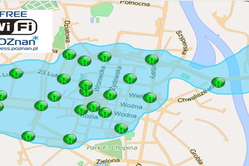 La rete esiste già da alcuni anni, ma negli ultimi giorni è stata significativamente potenziata ed ora copre l'area della Fan Zone, di Stary Rynek, fino a Ostròw Tumski. Tutta l'area coperta dal segnale è indicata sul posto da cartelli tipo quello a destra, collocati sulla segnaletica stradale o sulle latarne.