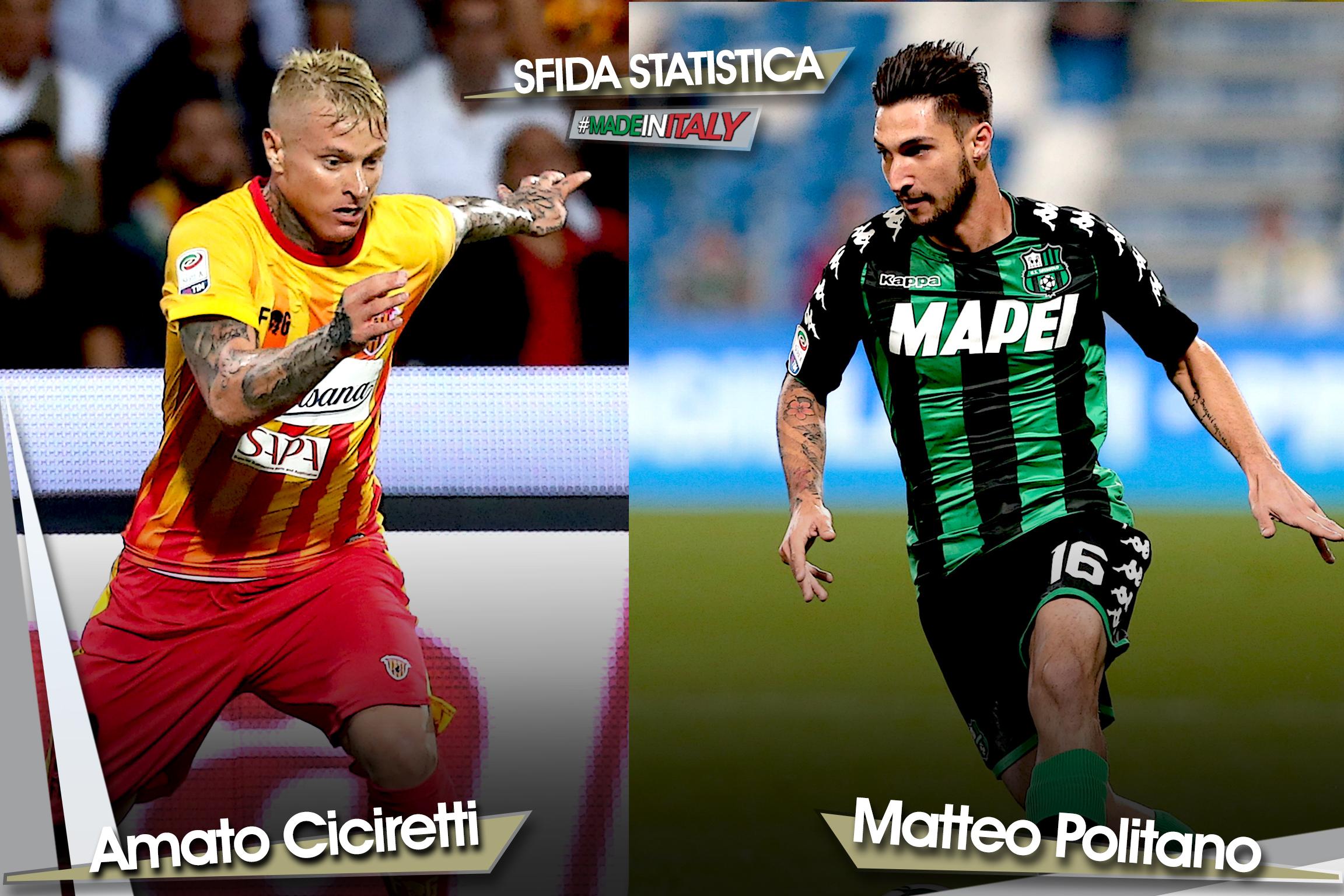 Due squadre in difficoltà Benevento e Sassuolo, specie nel reparto offensivo dove il gol è spesso una Chimera. Amato Ciciretti e Matteo Politano saranno gli uomini chiamati a dare la scossa e, per queste ragioni, sono finiti nel nostro focus statistico, elaborato attraverso i dati Opta (liberamente consultabili all'interno del nostro sito nella sezione Fantacalcio ---> clicca qui).Il 23enne romano in forze ai campani è al momento l'unico in grado di macinare gioco per i giallorossi, soltanto un infortunio muscolare lo ha tenuto fuori dal campo in alcune occasioni: 8 apparizioni per lui per 544' complessivi. Anche Politano ha ormai acquisito lo status di go-to-guy neroverde con 10 presenze e 741 minuti all'attivo.Sono degli autentici trequartisti, dei rifinitori dotati di tecnica e dinamismo che prediligono la giocata in verticale all'alleggerimento per vie orizzontali; 200 i tentativi di passaggio del beneventano, andati in porto nell'80% dei casi (75% limitatamente alla sola metà campo offensiva) mentre se ne contano 226 per l'esterno sassolese con livelli di efficacia molto similari (77,4% globale ed addirittura 78,8% nella metà campo avversaria). Ottimo lo score di Ciciretti nell'1vs1 con un 44,8% di duelli individuali vinti (32,1% per l'avversario di domenica) mentre sui contrasti aerei entrambi palesano oggettive difficoltà a prevalere: 18,2% di efficienza per il n°10, 14,3% per il n°16. Sono 32 e 27 i palloni rispettivamente recuperati.Entrambi hanno siglato due reti in questo campionato con, inoltre, un'identica percentuale di tiri nello specchio (55,6%); Politano aggiunge anche un assist al consuntivo offensivo. 9 e 11 le occasioni da rete prodotte dai due talenti mancini.