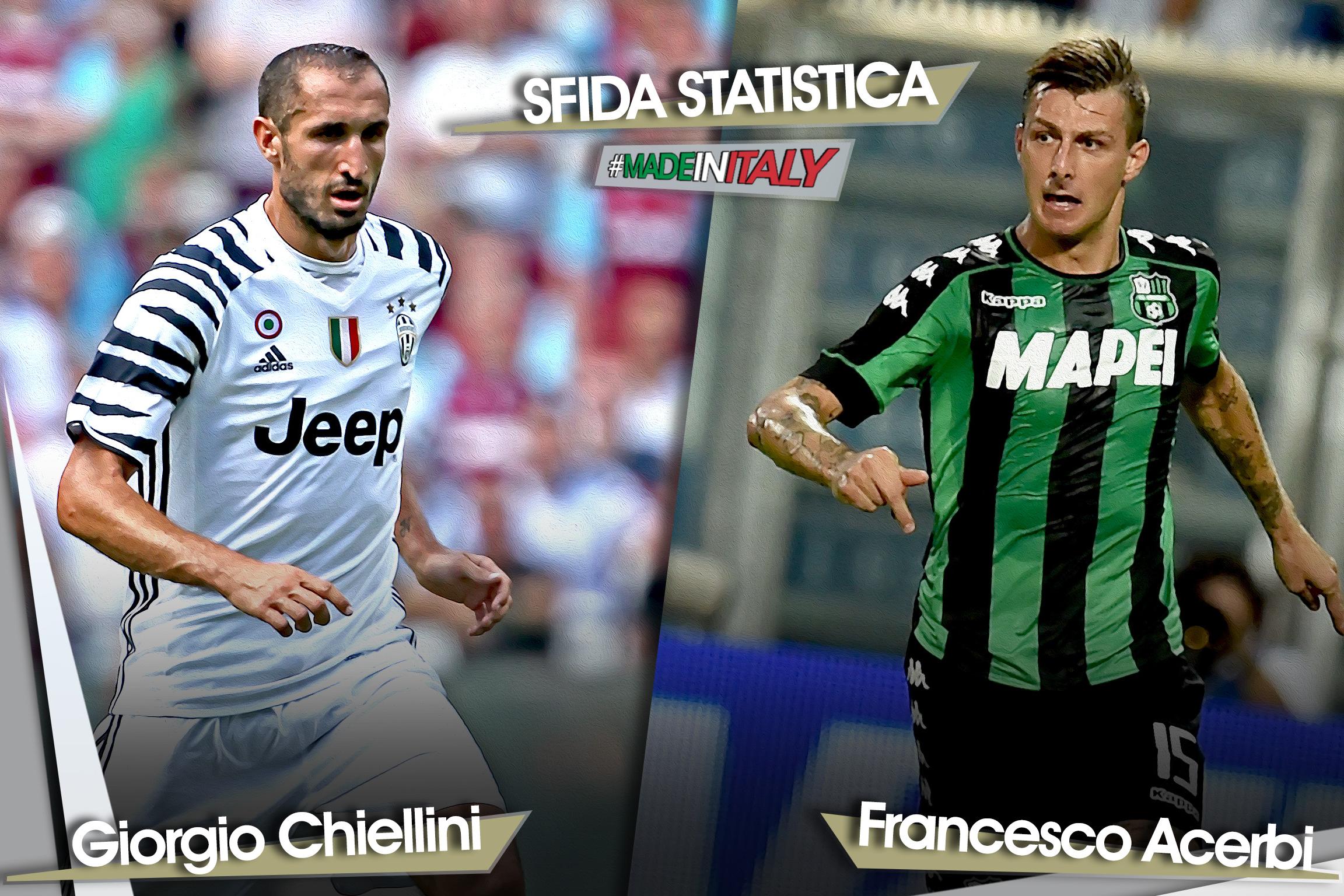 Archiviato il positivo incipit dell'era Ventura, dopo la pausa dedicata alle Nazionali torna la Serie A e si apre alle 18 di sabato con un intrigante Juventus-Sassuolo. Dopo la querelle che ha portato la sconfitta 0-3 a tavolino, in casa neroverde c'è voglia di riscatto; l'assenza di Berardi, infortunato, peserà e molto dipenderà dalla capacità di reggere l'urto dell'attacco bianconero da parte della difesa emiliana. Da questo spunto e dalla considerazione che il reparto arretrato agli ordini di Allegri è il riferimento assoluto in materia di affidabilità nasce il confronto statistico tra Giorgio Chiellini e Francesco Acerbi. Studiamoli più da vicino analizzando, attraverso le statistiche Opta, le prestazioni fornite finora da loro in campionato.Epurando il dato dallo 0-3 inferto al Sassuolo dal giudice sportivo contro il Pescara, entrambe le squadre hanno sinora subito una rete; colpisce che la Juventus abbia concesso appena 2 tiri nello specchio, contro i 7 del Sassuolo. Il giro-palla difensivo è uno dei marchi di fabbrica dei Campioni d'Italia ed i 160 passaggi tentati dal centrale nativo di Pisa e cresciuto nel Livorno (dei quali il 89,4% è andato in porto) sono eloquenti in questo senso; 96 quelli tentati dall'ex milanista (con un'efficacia invidiabile pari al 92,7%). Acerbi è più esposto all'1vs1 coi 14 duelli vinti (77,8% del totale) contro gli 8 del bianconero (57,1% del totale) a dimostrarlo.Entrambi sono a quota 5 contrasti aerei vinti nelle prime due della stagione mentre Chiellini la spunta in quanto a palloni recuperati (16 a 9); addirittura 9 i palloni intercettati da Acerbi (2 per Barzagli). A completamento della panoramica uno sguardo sul versante disciplinare: si conta un cartellino giallo per il centrale del Sassuolo, nessuna per quello della Juventus.