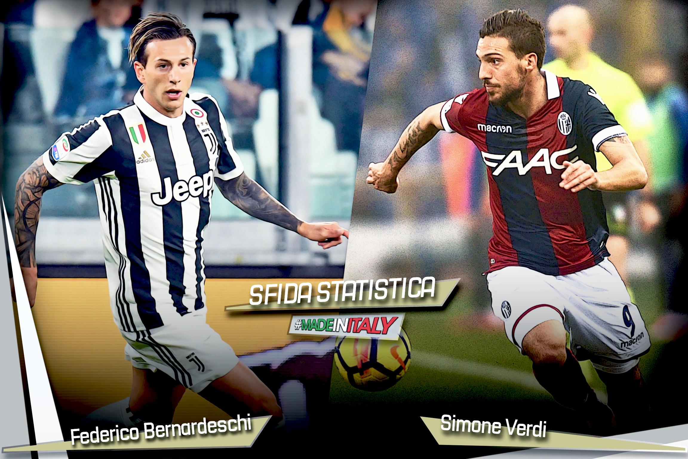 Siamo ufficialmente entrati nel rush finale di questa accesissima stagione con la Juventus pronta ad ipotecare il settimo titolo consecutivo per mezzo di una vittoria contro il Bologna che, però, è avvezzo a sgambettare alcune grandi nelle annate sotto la gestione Donadoni. Al centro del nostro focus statistico, elaborato come sempre attraverso dati Opta (liberamente consultabili all'interno del nostro sito nella sezione Fantacalcio ---> clicca qui), sono finiti due grandi talenti nostrani dotati di tecnica e fisicità come Federico Bernardeschi e Simone Verdi.Il n°33 bianconero ha vissuto una fisiologica fase di adattamento alla realtà juventina, con un infortunio al ginocchio all'inizio del 2018 che ne ha rallentato il processo: sono ad ogni modo 20 le sue apparizioni per un impiego complessivo pari a 751'. L'ex milanista è invece il perno della compagine emiliana, certamente l'elemento di talento capace di fare la differenza per i rossoblu: 31 presenze per 2.582'.Il calciatore toscano colpisce per la capacità di essere sempre decisivo, per l'attitudine nel dare un contributo costantemente apprezzabile ai risultati di squadra: la sua efficacia nei passaggi, pari all'85% e l'abilità nell'uno contro uno (53,3% di duelli vinti) sono la cartina tornasole di questa disamina; rispettivamente, Verdi si ferma al 77,7% ed al 46,6%, numeri tutt'altro che rivedibili comunque. All'esito di 5 contrasti vinti, 10 intercettazioni e pagando lo scotto di 16 falli commessi con 4 gialli al passivo, Bernardeschi recupera 38 palloni, 1,9 a partita. Molto meglio riesce a fare Verdi in tal senso, con 144 palloni recuperati (4,6 a partita), frutto di 21 contrasti vinti e 35 intercettazioni con 20 falli commessi ma una sola ammonizione rimediata.Chiudendo la rassegna statistica con le cifre offensive, spicca la media-gol del bianconero che timbra il cartellino ogni 187' per 4 reti totali contro le 8 del collega di reparto, siglate però con una frequenza pari ad una ogni 322'. Verdi è stato addirittura capace di andare in doppia cifra nel computo degli assist, arrivando a quota 10; anche Bernardeschi però si difende con 6.