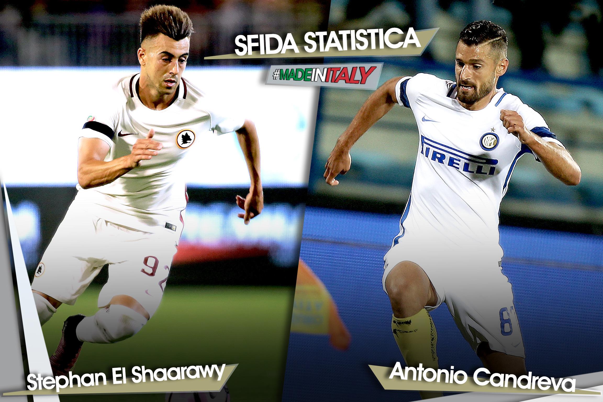 Il degnissimo epilogo della settima di Serie A TIM sarà rappresentato da Roma-Inter, una sfida valsa più volte la vetta del calcio italiano in questo scorcio di terzo millennio. La Roma è chiamata a confermare l'ottima performance infrasettimanale di Europa League, scrollandosi così di dosso la ruggine che ne ha contraddistinto le ultime uscite nella speranza di mantenere in vita il sogno tricolore ormai divenuto obiettivo imperativo dopo anni di traguardi sfiorati mentre l'Inter è reduce dal secondo stop europeo consecutivo proprio quando sembrava sulla via di trovare la quadra di un progetto tecnico giovane ed ambizioso, volto a riportare la compagine nerazzurra nel calcio che conta nel più breve tempo possibile. Il focus statistico di questa settimana si concentra su due esterni azzurri che spesso sono giocatori-barometro per Roma ed Inter: Stephan El Shaarawy e Antonio Candreva.Sono esterni offensivi sui quali Spalletti e De Boer fanno costante affidamento, come dimostrano le 6 presenze in altrettanti match di campionato sinora scanditi dal calendario (4 volte titolare l'ex rossonero per 278' giocati, 5 volte il neo acquisto interista con 396 minuti spesi in campo). Dal punto di vista della partecipazione alla manovra il loro apporto è similare: 131 passaggi tentati dal romanista (77,1% di completati), 162 da Candreva (75,9% i completati). Sull'efficacia nell'1vs1 la spunta quest'ultimo, con un'efficacia del 63% contro il 43,8% di El Shaarawy. L'inizio della stagione ha visto il n°87 nerazzurro davvero tirato a lucido, incisivo come non mai anche in fase di non possesso con i 19 palloni recuperati a dimostrarlo (9 invece per l'esterno cresciuto nella cantera genoana).Un dato che colpisce riguarda l'Inter: ben 7 delle 8 reti messe a referto finora in campionato sono state corredate da un assist. Candreva spicca come elemento d'eccellenza in questo senso nello scacchiere meneghino, essendo al vertice della classifica parziale degli assist man a quota 3 ed artefice di ben 19 occasioni da gol; nemmeno El Shaarawy tuttavia è fermo al palo ed ha confezionato 1 assist, mettendo inoltre lo zampino in 5 occasioni pericolose cui però aggiunge anche un gol, a differenza dell'ex laziale che è ancora a secco.Nulla da segnalare riguardo il versante disciplinare: nessuno dei due è mai finito nelle prime sei giornate sul taccuino dei "cattivi".