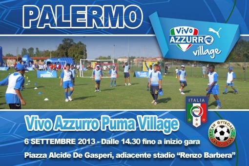 Il Vivo Azzurro Puma Village fa tappa a Palermo in occasione di Italia-Bulgaria, gara valida per le qualificazioni ai Mondiali di FIFA Brasile 2014. Il villaggio azzurro sarà allestito nel parcheggio della piazza Alcide De Gasperi, adiacente l’ingresso principale dello stadio "Renzo Barbera", e sarà aperto a tutti, adulti e bambini, dalle 14.30 fino all’inizio di Italia-Bulgaria, con ingresso gratuito.